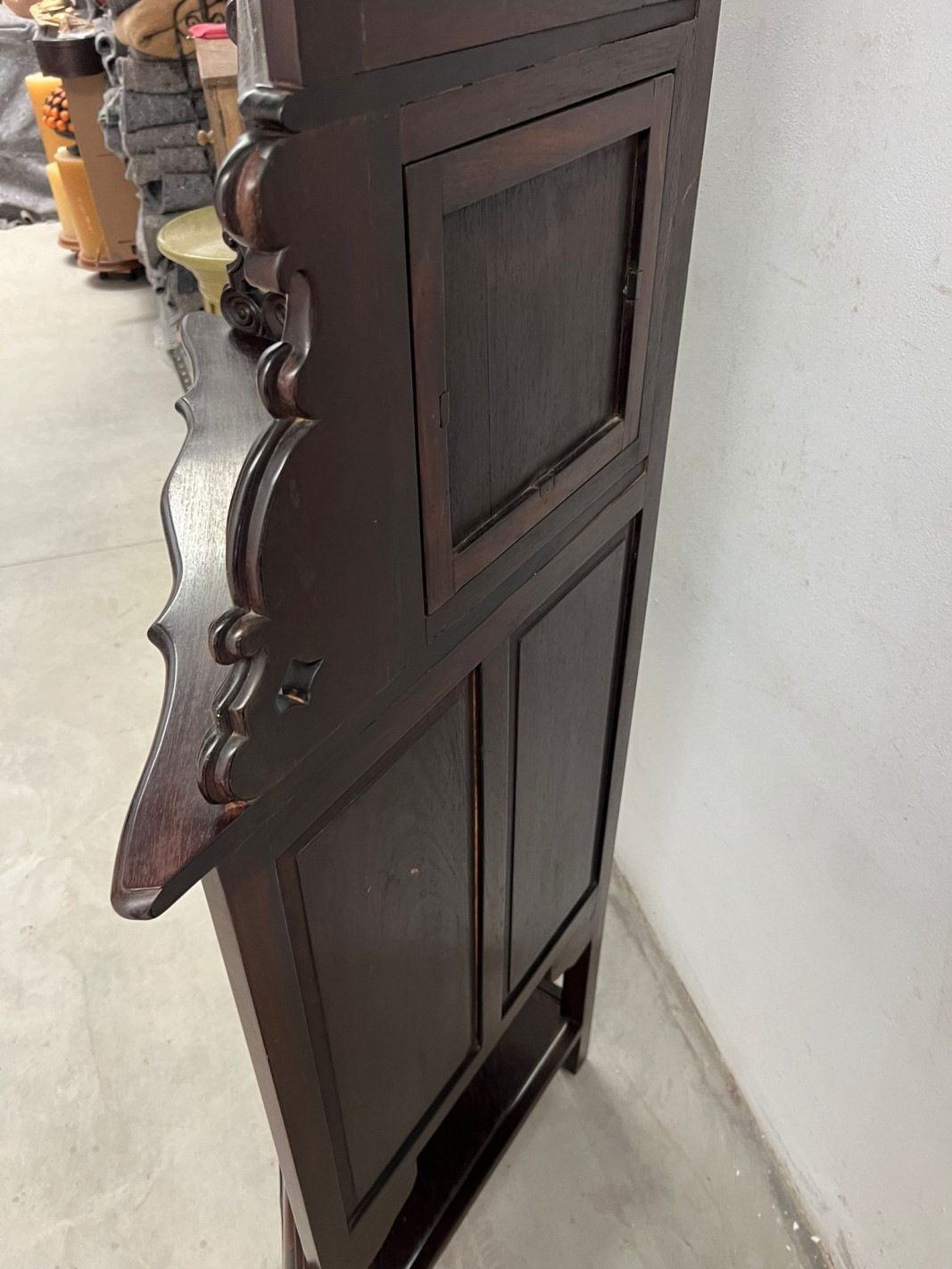Pareja de Vitrinas rinconeras en madera de palo santo.